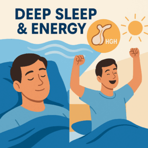 - Libido & sexual well-being: indirect lift as sleep, energy, and body composition improve — notable HGH benefits for males.